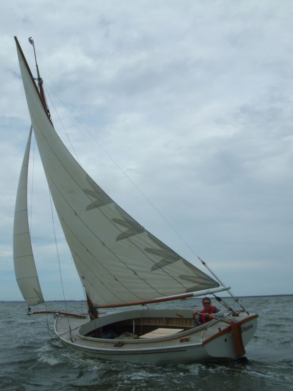 Name: Diana Later names {also Sail or Rego or Fishing No}: {FB501}-b13 Material: Wood Rig: Lug Rig changes & identification codes: A.b (standing lug) Type:Fishing/Yacht Propulsion: Sail Designer: <unknown> Year built: 1900s? Yard or Job No: <unknown> Builder: <Unknown> Where built: Vic? Engines: <unknown or N/A> Boilers/Gearing: <unknown or N/A><unknown or N/A> Official Number: <unknown or N/A> IMO Number: 0 Dimensions (ft)— Length: 24 Breadth: 8.75 Depth: 2 Volumetric ‘tonnage’ measurements (1 ton = 100 cubic ft): Gross: <unknown> Underdeck: <unknown> Net: <unknown> Decks: Cockpit Deck Erections: <unknown> Number of funnels &location: 0 Number of bulkheads: <unknown> Tanks, etc: <unknown> Freeboard: <unknown> Stem: Straight Figurehead: Nil Stern: Transom raked PORTS and owners: MELBOURNE?p60s: PAYNESVILLE@c65s Rick Eadie: '96b11 David Evans: '11b13 Brendyn Hancock Fate/Status— Year: 2013 Type: Operational Details: <unknown or N/A> History and details: Carvel planked. Standing lug. 24" draft. Rudder & tiller hung from transom. Fitted with auxiliary motor nd. 1976 rebuilt by Sid Reynolds, fitted with square plywood cabin and new motor. 2000s sitting on the mud. 2009 underwent major refit, fitted with standing lug rig, new deck and motor, reconditioned 2Cy. Yanmar 2QM20 diesel. 2011/02 purchased.