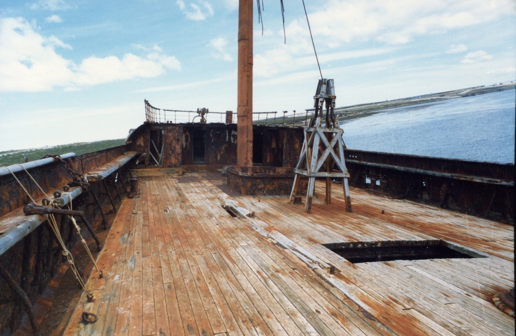 I am aware that the islanders consider the numerous wrecks and hulks around their coast to be part of their own heritage. The Lady Elizabeth is the best preserved of them all, she is very close to Port Stanley, and it would take a lot to persuade them to release her. Perhaps we should remember that the Lady Elizabeth, along with the other hulks, are as much a part of the Falklands heritage and scenery as sheep farming and penguins. However, having said that, it would be nice to see the ship somehow protected against further deterioration.