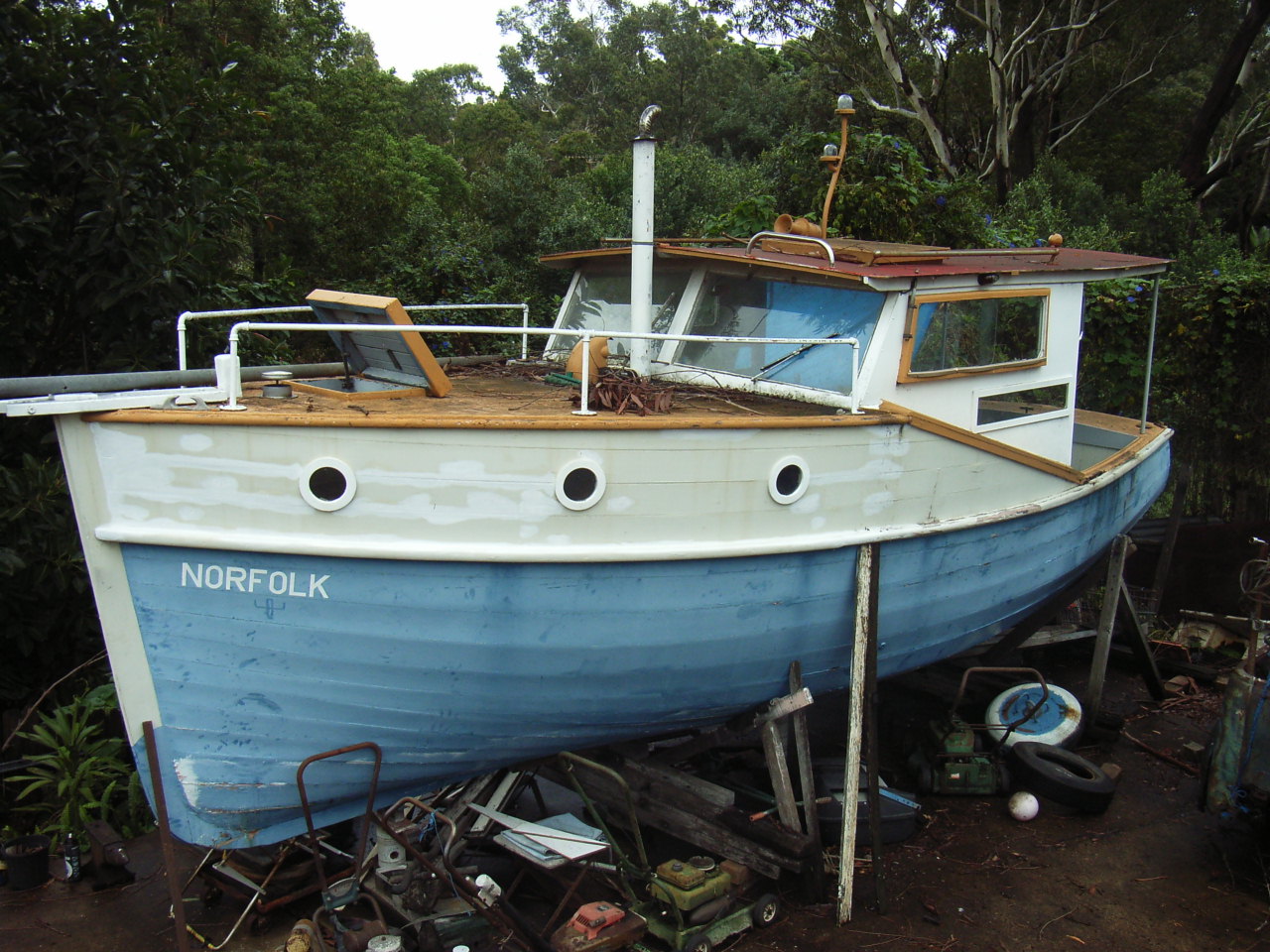 History and details: Pleasure launch. Batten seam carvel planked. Built at 1428 Botany Road. Three portlights in port side of RFD. 1959 purchased from car dealer who had boat moored at Brighton Amateur Fisherman's Club. 1959-1990s moored at Qatley Bay. c1997-2009 on hardstand in backyard of owner. 2009/03 for sale.