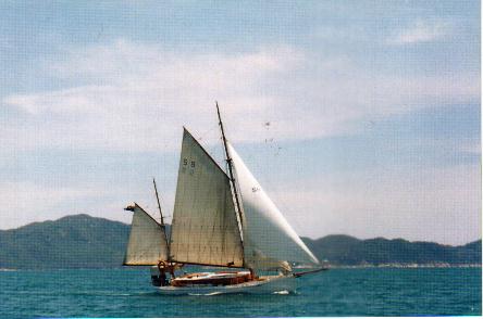 A gaff-rigged ketch, Oimara was prominent in Australian waters as an ocean racing yacht from the 1920’s to the 40’s. Raced by the Bennell family she re-introduced the Bass Strait races (winning in1929, ’34, and 37) and founded the trans-Tasman races (1931). The Bennell’s, prominent Melbourne dentists, mounted a dentist’s chair in the main cabin just aft of the main mast and sailed around Bass Strait during the ‘30’s pulling teeth. In this way they were able to keep their yacht during those difficult times. Each Xmas, the yachts in the Portsea to Devonport race still compete for the “Bennell Cup”.