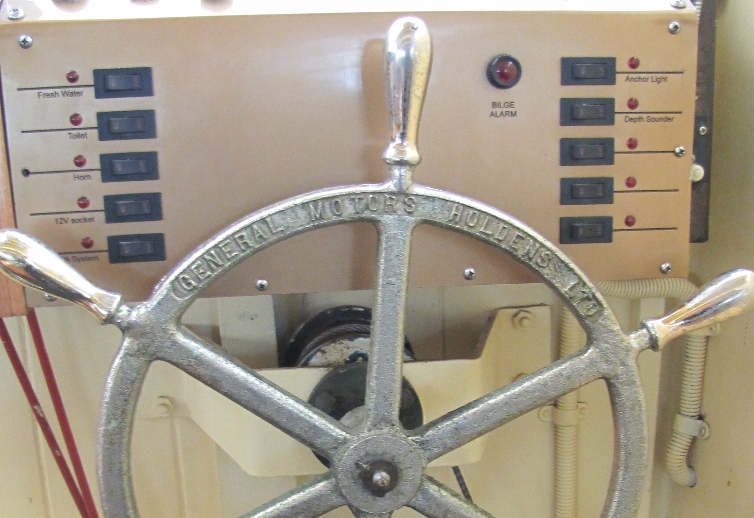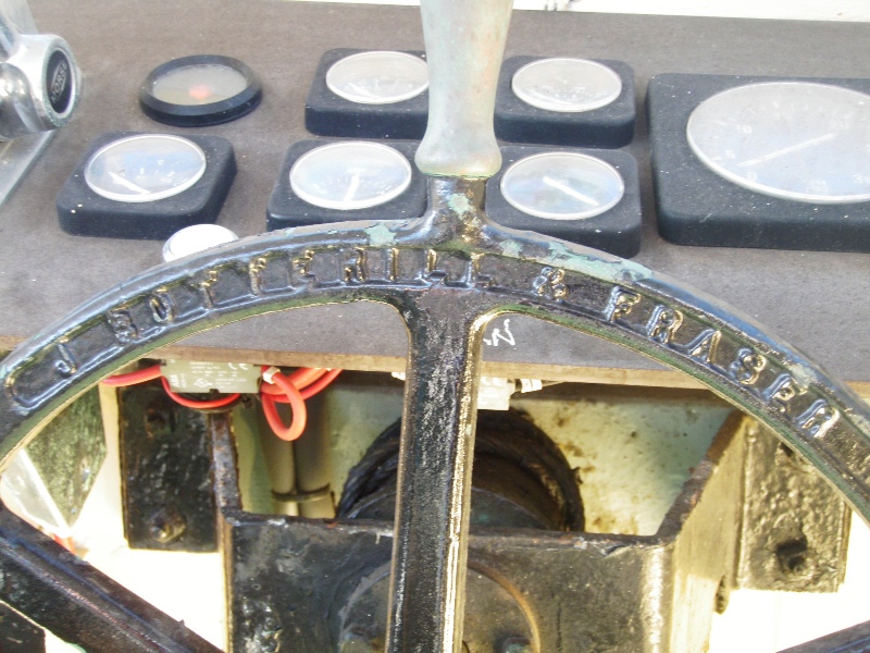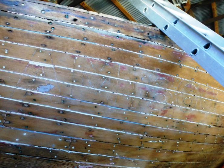 PS: The above might also prove useful when trying to identify other types of WW2 built craft. I was recently told that the first method revealed that a motor cruiser was originally RAAF 020-2 a fire float launch. Photo 1: The number AM1860 can still be clearly seen incised into the planking at the forward shoulders of this 40' workboat. Photo: Mori Flapan Photo 2: Stem markings of a Naval cutter. It reads XX-X No 2 Savage W'Town 1944. The meaning of XX-X is unknown. But the rest indicates Launch No.2 built by J.J.Savage at Williamstown, Melbourne in 1944. Photo: Mori Flapan Photo 3: The steering wheel of an Army workboat showing the name of the builder J. Botterill & Fraser cast into the rim . Photo: David Glasson Photo 4: Numbers on former AWB417 cut into the transom.