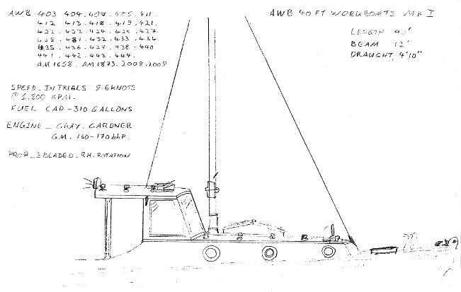 Post war, the RAN workboats were stationed in every State capital city, at Jervis Bay, Westernport Bay and in Papua New Guinea. The RAN progressively made alterations. The tall mast was replaced by a much shorter one on the wheelhouse. As time went on the petrol engines were removed and replaced by diesels. Robert Curran has located the following: