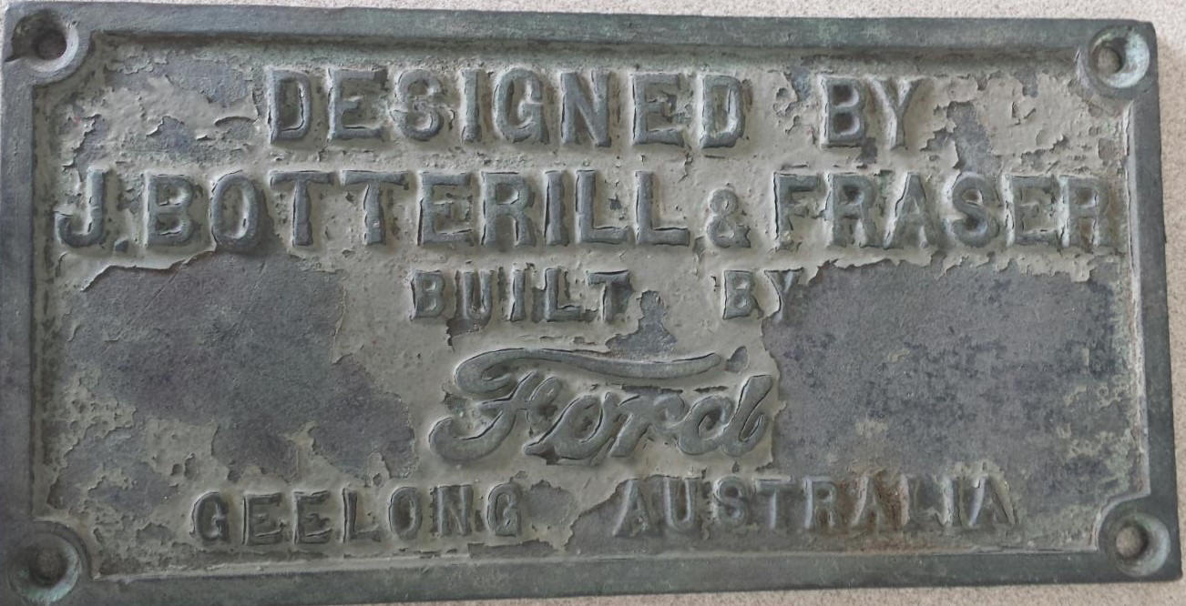 A builders plate thought to have perhaps come from a Ford-built 40' workboat. Botterill and Fraser were the designers and the workboats were the only known boats designed by them that were built by Ford Manufacturing. Photo: Clive Paton J. Botterill & Fraser had to expand their operations to meet the demands of war. They opened a second yard on the waterfront at Footscray, and at that site built larger vessels up to 85'. John Botterill was an apprentice at his father's yard and worked on Michael Gregg provided the following information on A.T.Brine &Sons Ltd: